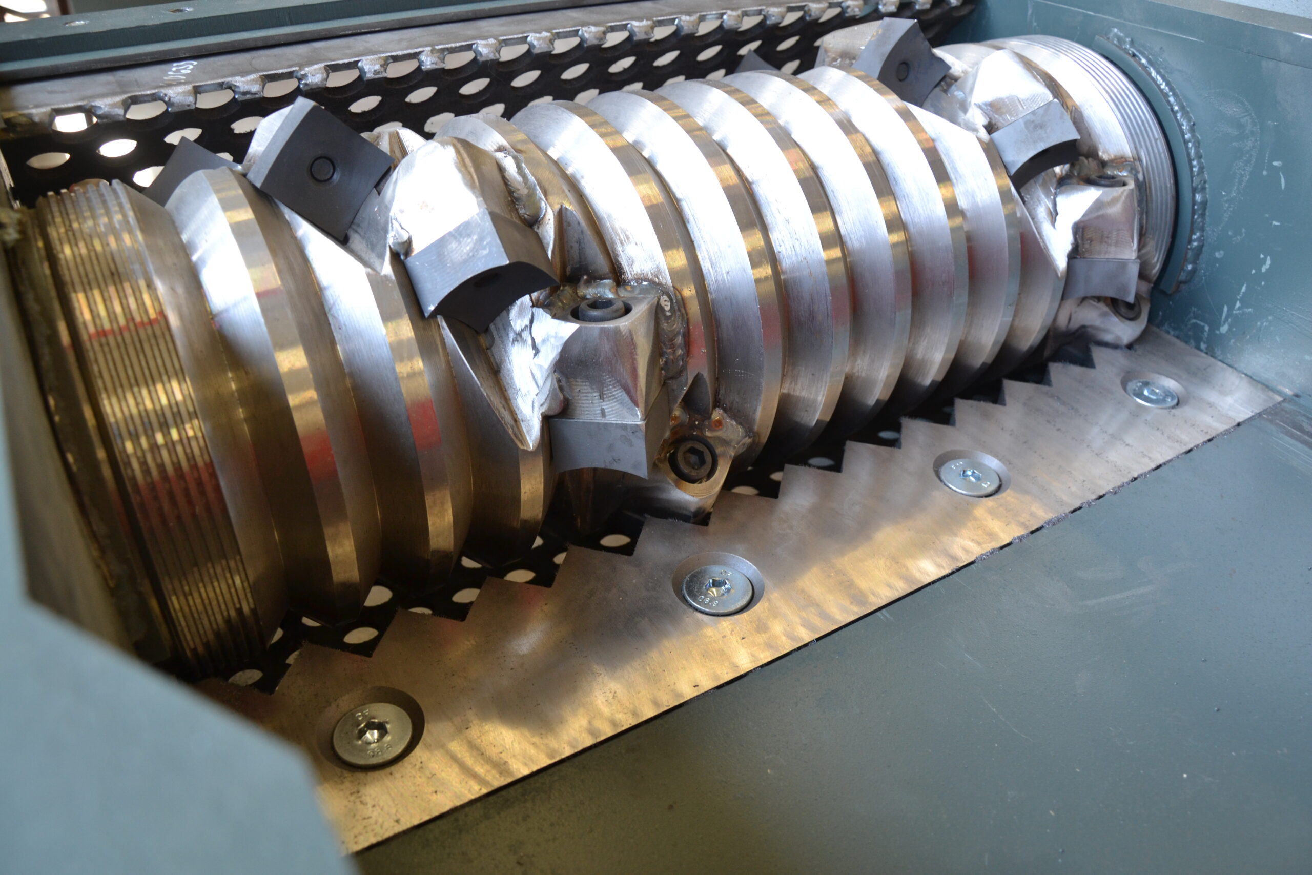 And something many users do not realise is that the shear gap between the rotor and stator knives in single‑shaft shredders is typically around 1 mm. The result is an imperfect cut. This leads to higher energy consumption and more dust in the output compared to shredders with a precise cutting action.