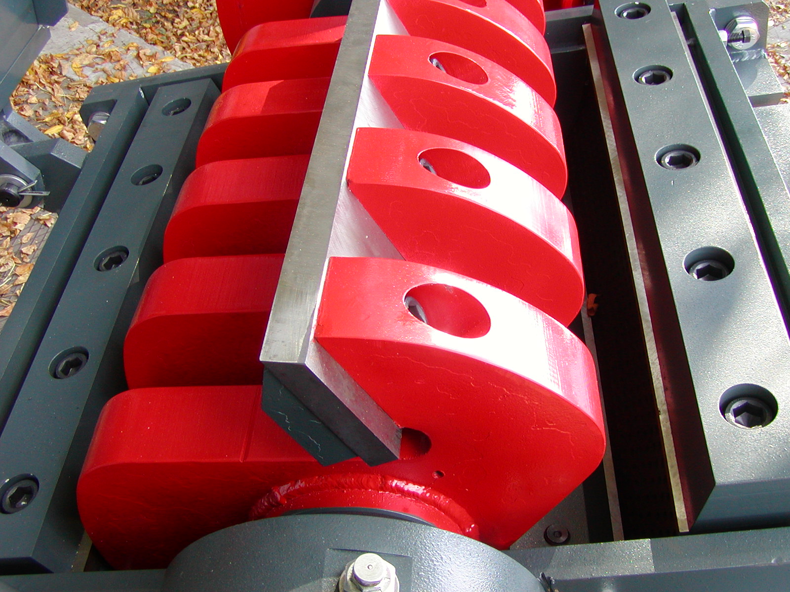 The cutting tools consist of flat knives mounted on the rotor carriers and on the stator of the shredding chamber. The knives are positioned at an inclined angle relative to each other, creating a scissor‑like cutting effect. This significantly improves cutting efficiency, reduces energy consumption, and lowers the machine’s noise level.